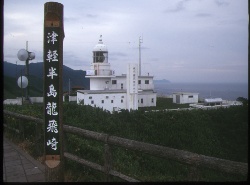 龍飛崎です。断崖絶壁になっていて、下を覗くと怖いです。 冬になると、波が上までとどきそうです。 展望台から見る、龍飛崎灯台です。 |