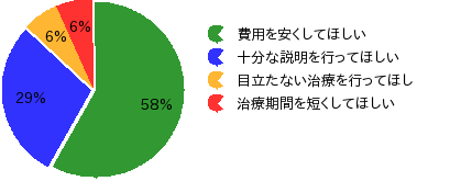 解説:矯正歯科治療は原則保険がききませんので、費用に対する要望が多いようです。
