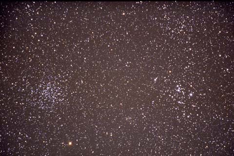 M46,M47/散開星団 M46=NGC2437(左),M47=NGC2422(右),NGC2423(右上) CN-212 ニュートン焦点 (トリミング) |