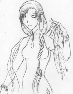 どういうわけか、男性不信で、初対面の男性にはだいたい恐怖している。が、相手に敵意が無いことが解れば普通に接することが出来る。また、人見知りもするようで、自分から人に話し掛けることはめったに無い。 自分の過去が無いことに不安を感じており、そのことでしばしば悩んでいる。 踊り手という仕事に誇りを持っており、踊り子や、娼婦と同一視されると怒る。 踊り手:歌と踊りのプロフェッショナルで、人に依存して生きる事を良しとしないため、独自の護身術を持つ者。 プレイヤー:紫苑 |