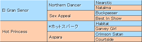 牝 馬 50- 33- 47- 47- 38- 446/ 661( 7.6%/ 12.6%)