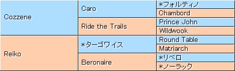 4歳・秋 0- 0- 1- 8/ 9 0.0% 0.0% 4歳・秋 0- 3- 0- 3/ 6 0.0% 50.0%