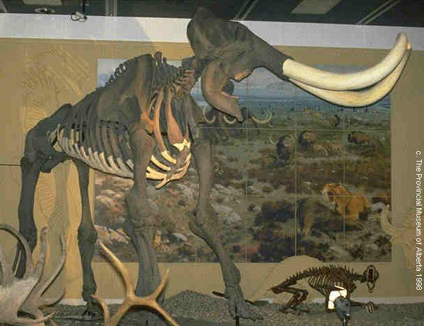 アルバータ州立博物館−展示風景−![]() The Provincial Museum of Alberta This cast of a Columbian mammoth (Mammuthus columbi) skeleton was a gift to The Provincial Museum from the Friends ofThe Provincial Museum of Alberta Society on the occasion of the Museum's 25th Birthday and the Society's 10th Anniversary in 1992. The original was excavated in the Wasatch Mountains of Utah. The cast stands 3.4 m (11 feet 2 inches) tall at the shoulder. |
