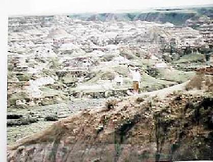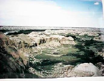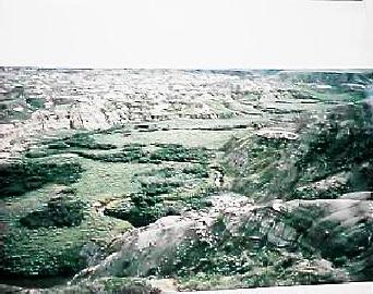 世界遺産−恐竜発掘現場”ダイナソ−州立公園”360度見渡すと、また、どこまで走っても、延々と小麦畑平原が横たわっている・・・・・・・・突然!前方に、ポッカリと地面の割れ目が見えたと思った瞬間、異様な景観が目の前に展開した!!!!! そこは、まるで中世代に逆行したような・・・・・ なんとも異様な世界だった! ここが 世界遺産−恐竜発掘現場”ダイナソ−州立公園” |