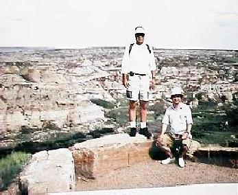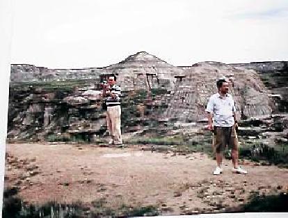 恐竜発掘現場”ダイナソ−州立公園”展望台から、川底に降りていく!!レッド・ディア−川の侵食により、このような奇怪な景観を呈する.恐竜発掘現場のある川底に降りていく!! |