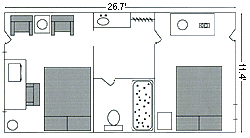 ![]() Charlton's Evergreen Court. Deluxe Suite−Charlton's Evergreen CourtThis unit features two semi-private sleeping areas, each with one double size bed separated by the bathroom/vanity area. The bathroom is specially equipped with a jacuzzi tub.![]() Charlton's Evergreen Court. Room |