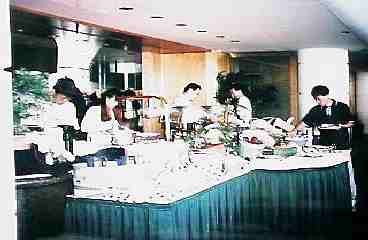パン・パシフィク・ホテル,3、4階レストラン街Cascades Loungeで、簡単な軽食を・・・・・このほか、日本食レストランや Five Sails Restaurant等の専門店があった.