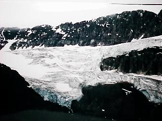 クロウフット氷河望遠レンズで、クロウフット氷河を拡大!!クロウフット氷河展望台をあとにする. |