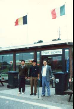 A1高速道路サービスエリアで昼食ピカルディー地方はもともと農業産地であったが、19世紀には織物産業の中心地として産業革命が起こった場所である。それからドーバー海峡を隔ててイギリスへの玄関となるノール地方。またノール地方のカレーからはユーロトンネルで現在ではTGVが海底トンネルでフランスとイギリスを結んでいる。お昼ごろにベルギーとフランスの国旗を近くのサービスエリアに到着した。みんなお腹が減っていたので昼食をとろうということになってサービスエリアに車を入れた。サービスエリアにはスナック・エクスプレスという看板が掲げられていた。これは料理が早いということであろうか、あるいは簡易なレストランという意味であろうか、レストランの屋根にはフランスの国旗とベルギーの国旗が掲げられていた。自由・平等・博愛の左から赤・白・青と3色のトリコロールとなっている3色旗、フランスの国旗は18世紀のフランス革命によって革命軍のシンボルとしてつくられたものである。一方ベルギーの国旗は19世紀にベルギーが独立した時に作られたもので、左から黒・黄・赤の3色の色からなる国旗である。ベルギーは立憲君主国である。フランスは共和国である。レストランの中に入っていくと日本でいうバイキング形式のレストランであった。 自分が好きな食べ物を取ってあとで会計で精算するのである。 いろんな種類の多い料理が並べられていた。これを自分の好きな料理をひとつずつ取って行ってあとで会計で精算するのである。中にお客さんはあまりなかった。やはりフランスは肉料理が主体になっており、私はサラダ、肉料理とそれに飲み物としてはコカコーラを。写真はレストランの前で記念写真を!左から山崎研究員、真中が白石研究員、1番右が山本である。店の店員さんは主人らしき人1人しかおらなく非常に合理的であった。日本の店にはたくさんの従業員がいるが、こちらではできるだけ人を省くようなスタイルで、営業している。 |