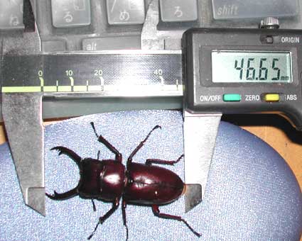 エロンガトゥスが我が家に来ました。♂1♀2です。♂はアゴ欠けB品ですが♀が50mm.46mmとめちゃくちゃおおきいです。