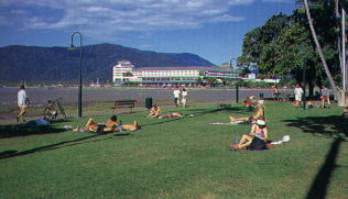 公園で日光欲もいいですよ(日差しが強いのでサングラスを忘 れずに)本なんか読みながらゆっくりケアンズを満喫しながら時 間を過ごすのもグッド!! |