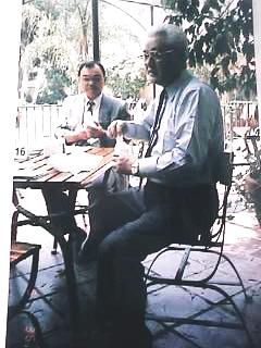 7月2日ホテルで昼食ホテルに到着して、ひと安心! とたんに、おなかがすいてきた。 1階ホテルのフロントレストランで昼ご飯を食べることにした。 メキシコ料理だった。 写真に写っている1人は、常務が連絡をした商社の人間であった。 昼食の後、サンキスト社に案内してくれるということであった。 空港に迎えに来ていたが、足は、すべて私どもが用意したレンタカーで、これからのサンキスト社についても、この車で行くことになっている。 まだ新人のようである。 あとで彼のロサンゼルスの自宅まで車で送らされることになった。 もちろん、車の運転は私どもがすることになっている。 食事をして、ご満悦の顔が見える。 |