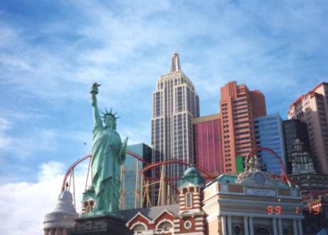 ニューヨークニューヨークニューヨークのマンハッタンを模倣したホテル! エンパイアーステートビル・自由の女神、ブルックリン橋、クライスラービル などなじみの建造物が宿泊施設となっている。 この建物をの中をマンハッタンエックスプレスというローラーコースターが走っている。このジェットコースターは、日本の会社が作ったものである。 98年7月からロード オブ ダンスという舞台が始まっているが集団タップダンスと言われて、あまり評判は良くない。 |