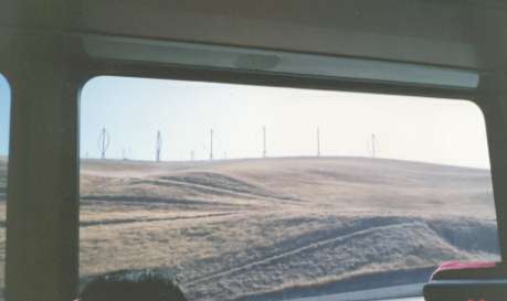 風車発電サンフランシスコのダウンタウンからベイブリッジを渡ってオークランドに そこからルート580号に乗ってヨセミテの国立公園まで行くことになる。 街並みを向けて郊外に出ると、前方の丘陵地にたくさんな風車発電が立ち並んで見え始めたいた。 サンフランシスコの海からのはまかぜが風車発電に良いようで1列に山の頂上に風車発電がずらっと並んでいて壮観な景観であった。 |