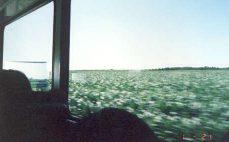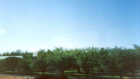 野菜の園芸地帯風車発電地帯の丘陵地を通り 野菜の園芸地帯が広がってきた バスの両側は見渡す限り地平線の果てまで植えた畑が広がっていた 果樹園地帯も見え始め この580号線の両側まさに壮大なる園芸団地の景観を呈していた。 | |