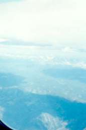 ロッキー山脈の山並みが終わると同時にデンバーの町が見えてきた。このユナイティド・エアーの飛行機は1度デンバーに降りることになっており、 ロッキー山脈の山並みの端にできたデンバーの町に飛行機が降り始めた! テンバーの街は本当にロッキー山脈の山並みが終了するところに開けた町である |
