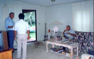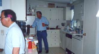 昼食は牛肉を使った豪快なバイキング料理になった!ひと通り果樹園を見た後、シルバースプリングスの社長が昼食には、まだ時間があるので、かんがい用水用の池で魚釣りをいたしましょうと誘ってくれた。事務所からわれわれ用の釣りざおを持ってきてくれて早速魚釣りに出かけた。かんがい用水用の池で魚釣り 事務所といっても、日本にあるような固定した建物は一切ここにはなかった。 アメリカでは、農地には一切建物を建てることができない。 このためこのシルバースプリングスの果樹園においても農園を管理するため、事務所にはキャンピングカーを用いていた。 このキャンピングカーがかなり立派なもので、中に入って驚いた! 寝室は2人がゆったり寝れるほどのスペースが確保されたツインタイプの部屋であった、本格的な料理ができる台所と10人がゆっくり座れるほどのスペースがある食堂、ゆとりある応接室、仕事をする作業部屋 ちょっとした住宅よりもよっぽど豪華なキャンピングカーであった! 食事をしながら、アメリカ人の農園経営の手法の話を聞いた! − キャンピングカ−食堂 − キャンピングカ−寝室は2人がゆったり寝れるほどのスペースが確保 |