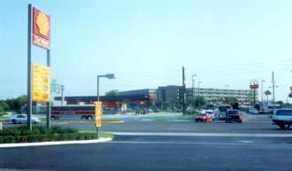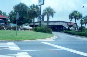 オーランドの町中へオーランドの街中を車で走ってみると、やはり広いなあという感じである! ゆったりとした道の両側にレストラン、スーパー、家屋などが整然と並んでいるが ここは、山が一切なく見渡す限り平たんな地形である! このため、目印となるものが全くなく、その意味では非常に車で走るのは難しい街である! レストラン街を走ってみると、ゆったりと道路まで緑の芝生を取り、 ぜいたくな土地の利用の仕方をしてしていた! 建物は、平屋が多く2階建ては少なかった! 町中の車の量はそんなに多くないという感じであった! とにかくを緑の多い街ではある |