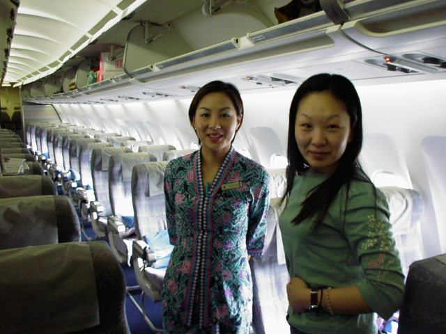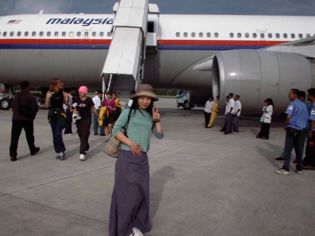 とみのさんがぜひ購入して帰りたいといっていたマレーシア航空のスチュワーデスのコスチューム制服である。マレーシアの民族衣装で、非常にカラフルな見事なデザインの服装であった。 飛行機の機内で記念撮影にと言って一緒に写真を撮ってみた。 日本からの出発の飛行機便には2人の日本人のスチュワーデスが乗り込んでおり、日本語には不自由をすることはなかった。 機内の案内は英語の後に必ずこれらの日本人のスチュワーデスが日本語で案内をしてくれたので非常に分かりやすかった。 父はレスのコスチュームを、マレーシアに多彩に茂る花柄模様で飾られていた。 これがとても気に入ったようで、機内で何度も購入して帰りたいと話をしていた。 ランカウイ島の空港のターミナルではこのような民族衣装は販売していなかったので、クアラルンプールの国際空港のショッピングコーナーでマレーシアの民族衣装を購入する計画をしていた。 |