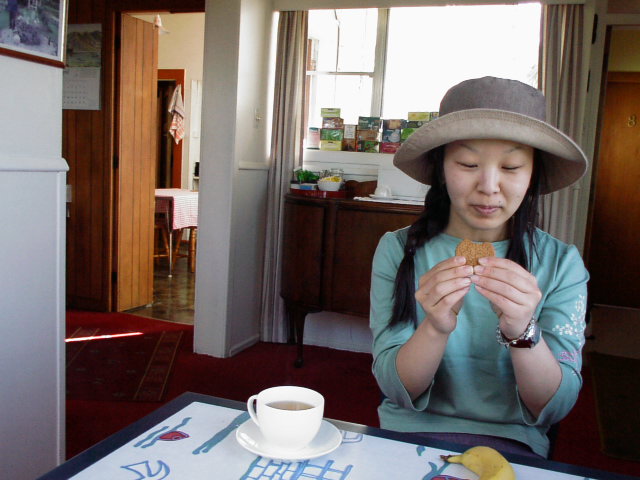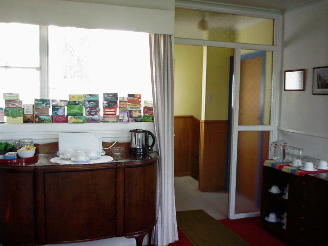 富野さんが丁寧に紅茶の接待をしてくれた。ホストが用意してくれたビスケットとバナナを食べ始めた。 これから街にショッピングに出かけようという前の腹こしらえをすることにした。 部屋の中は非常に整頓されてきれいに掃除が行き届いていた。 シングルで1泊78ドル約日本円にして4,000円のB&Bホテルである。 ツインでは一晩で110ドル、日本円にして約3,000円といったところであろうか。 私が宿泊した部屋はベットの上にきれいに折り畳んだバスタオルセットが用意されていた。 そして机と整理ダンス、部屋には冷暖房の設備が備え付けられていた。 電話は部屋から自動で外までかけることができるようになっていて非常に合理的にできていた。 このような設備が備わっていてこのような安い料金で宿泊することができるのならばB&Bホテルを利用することに限るという印象であった。 |