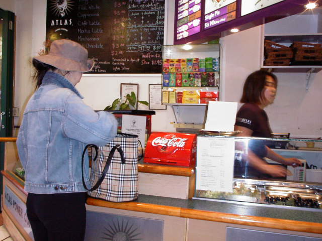 かなりショッピングで店を歩き回り疲れたので喫茶店で休憩をすることにした。クッキーとの飲み物を頼んでしばらくここで休息をすることにした。 2ドルも出せばかなりな量の食べたり飲んだりすることができるほど安い。 私たちがここで休息している間にもたくさんの人が入れ替わり立ち替わり入ってきていた。 富野さんはエスプレッソが好きなようで、喫茶店に入るとだいたいこれを頼んでいたようである。 セルフサービス化と思っていると注文した品物を店員さんがわざわざ座席まで運んでくれた。 テイクアウエーの店はセルフサービスが多いが、ここは注文した品物をわざわざテーブルまで運んで、すんだあとはわざわざ片付けに来てくれていた。 経営者は東洋人の顔をしていたので韓国系か中国系そのあたりの人のようであった。 ここで一息着いたのでさらにまたショッピングにこの通りの隅々を回って歩いてみた。 Media Player& Internet Explorerが必要 |
