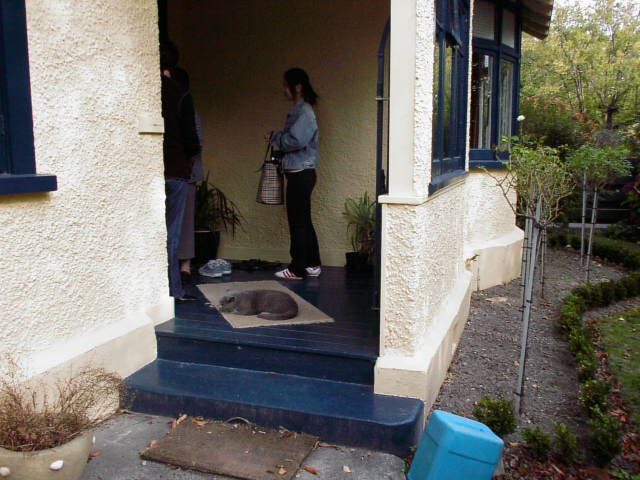 ホームスティー先の家は、ちょうどパーマストンノースの閑静な住宅街の中にあった。われわれが車で訪問した家は、道路に面したゆったりとしたスペースの庭を持っており、見るからに手入れの行き届いた立派な建物であった。 玄関には、訪問したわれわれを迎えるかのように1匹の猫が座っていた。 奥さんとお嬢さんがわれわれをにこやかに家の中に迎え入れてくれた。 奥さんは、われわれに部屋の中をいろいろ案内してくれた。 この家は、かなり大きなそして立派な家で、隅々まできれいに手入れが行き届いていた。 Homestay's house was just in a still residential street in Palmerston North.In the house which we visited by car, It had the garden of the space done to face the road in a relaxed manner, and going was a reached splendid obviously building to maintain. One cat was sitting on the door like inviting us who visited. The wife and the Miss radiantly embraced us in the house. The wife variously guided in the room to us. This house was considerably big and beautifully well-groomed to every corner in a splendid house. |