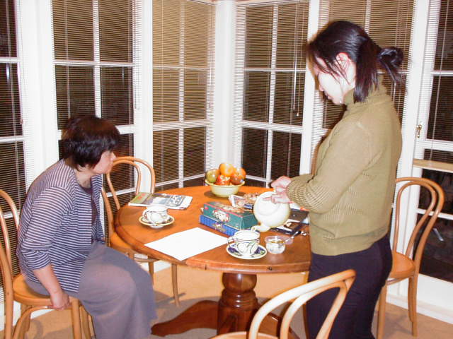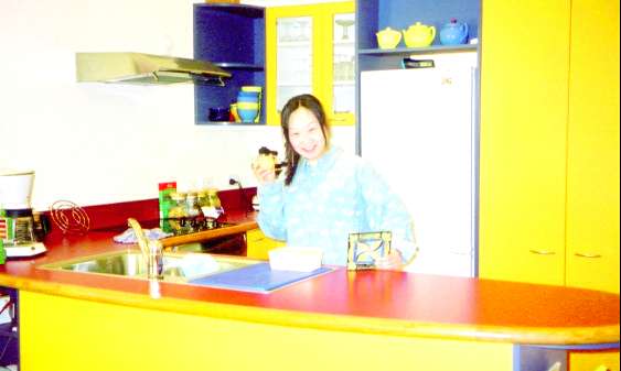 なほちゃんが疲れたでしょうと言ってみんなにお茶を入れてくれたニューワールドでのショッピングを終わるとわれわれは車でB&Bホテルの宿泊所に向かった。 時刻はかなり遅くなっていたが、をホテルのオーナーも今晩はこの建物にはいないので、この家全体をわれわれが今晩借り切ってしまったことになっている。 ホテルに到着すると、さっそくなほちゃんがつかれたでしょうと言ってみんなにとお茶をいれてくれた。 ここをオープンスペースの台所が非常に広々ととられておりその前にテーブルがあって、後ろの冷蔵庫から好きなものを取り出して料理をするように非常に合理的にできていた。 紅茶やコーヒーは自由に私たちが好きなものを作るように準備ができていた。 早速夜食で買ってきたお菓子をテーブルの上に広げてお茶を飲みながら休憩をすることとした。 |