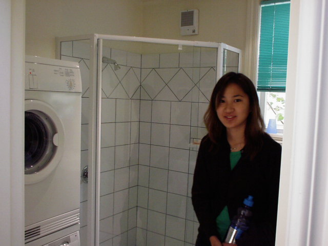 ![]() Eight Parliament Street B&Bホテル記念写真 下の写真は、ともちゃんがシャワー部屋と洗濯機のそばに立っている写真である。 この洗濯機を使うことによって旅行で汚れた衣服の洗濯物をきれいにできるようになっていた。 |