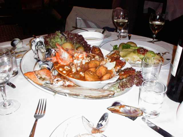 海の恵みNZ$59/二人分 サーモン、カキ、ムール貝、ホタテ貝、タコ、カレイなどの盛り合わせ出てきた料理はいずれも味がよく、4人ともおいしいおいしいと声を連発していた。 うれしいことに、料理の値段が非常に安いことである。 日本の料理の料金と比較せてみると半額以下の値段であった。 しかも1品1品に非常にボリュームが多いために、腹いっぱい食べることができる。 富野さんは毎回食べ過ぎた食べ過ぎたといっていた。 そのぐらい味もよく、値段も安く、そして日量が多いというまさに天国みたいなところであった。 ともちゃんや富野さんが注文したワインを少し味わせてもらうと、少し辛口のようであった。 一般的にニュージーランドのワインはヨーロッパのワインに比べるとどちらかいうとやや辛口の傾向があった。 注文した時はもちろんソフトな甘口のワインを注文したようであったが・・・・・・・・ |