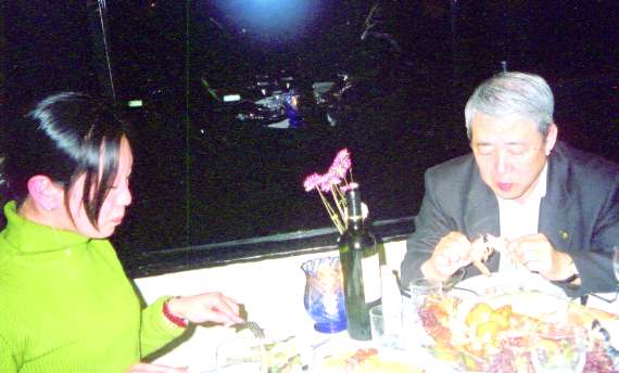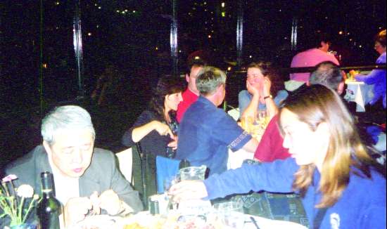 船のレストランに到着すると、今度は予定通り私たちを席に案内してくれた。私たちが席に案内されたときも、他の席はお客さんでいっぱいであった。 隣の席のスペイン人らしいお客さんはかなりにぎやかであった。 それぞれ国柄を反映して国民性が出るらしい。 このレストランでは、海の恵みという品物を頼むと魚の料理が山盛り皿に盛られて出てくる。 このお皿の上には、写真に見られるように1人では食べきれないほどの量のエビ、牡蠣、魚、サーモンなどのシーフードがお皿に盛られて出てきた。 これに加えて、それぞれ自分が好みの一品料理をメニューを見ながら注文した。 ともちゃんや富野さんはさっそくワインを頼んでいたようである。 窓の外には、ウエリントンの市街地の街の光がともって、非常にきれいな風景を醸し出していた。 |