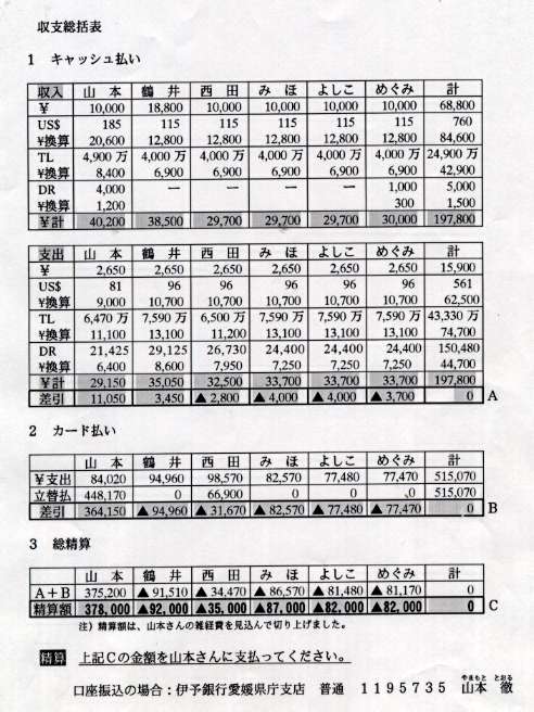ギリシャ・トルコ経費内訳
