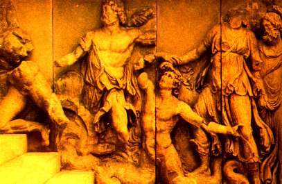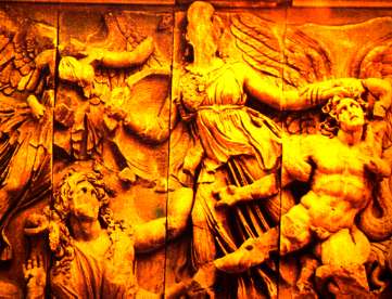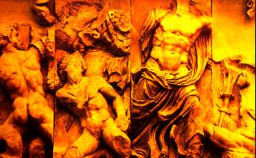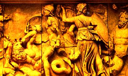 神々と巨人たちの戦いの浮き彫り像