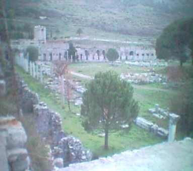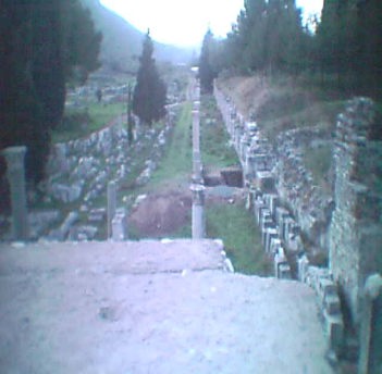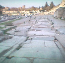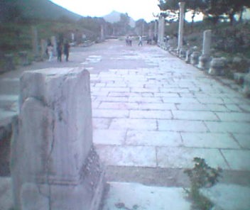 港に開かれた玄関口、現在は古代遺跡から海を見ることができないほど遠くに海岸線が退いてしまっている。われわれがここに到着したときには、たくさんの観光客がこの大劇場の観客席に坐って思い思いに時間を過ごしていた。この観客席から海がわに見ると素晴らしい景観が展開していた。 エフェス遺跡は全体像の図面を見て理解できたのだが、小高いい丘陵地のすそのを取り巻くように展開していた。 このエフェス遺跡はエーゲ海最大の古代遺跡で、しかも非常に保存状態がいい、規模の大きい重要な遺跡であった。 クレオパトラやアントニウス、アレキサンダー大王などのユーカリの地でもあり、またはキリスト教の聖パウロが伝道に訪れ、聖ヨハネや聖母マリアもこのエフェスに住んだことがある。 ということでキリスト教にとっても非常に重要なユカリの土地である。 港に面したこの古代都市も土砂がたい積して港が浅くなって海岸が遠のいていってしまったために、それにつれて衰退していったということであった。 現在では残念ながらこの古代遺跡から海を見ることができないほど遠くに海岸線が退いてしまっている。 |