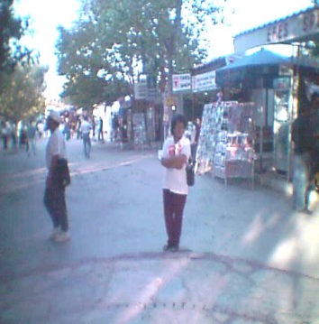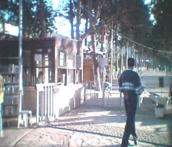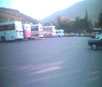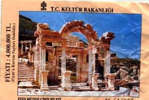 たくさんな土産物店が道の両側に軒を連ねていた。1時間という限られた時間のために、十分な観光はできなかったが、エフェソスの遺跡全体像は簡単に歩いて見て回ることができた。 足早に今まで見てきたコースを反対方向にが逆に入場口に急いで戻ることにした。私たちが入ってきた入場口に近づくほど観光客がたくさんな数になっているのに気がついた。そして入場口の出口を見てみると私たちが入ってきた時に止まっていた車の量よりもはるかに多いバスや乗用車が駐車場にずらっと並んでいた。どうやら私たちは一般の人の反対のコースをたどってきたらしい。ほとんどの観光客は上手側からバスから降ろされ、坂を下りながら遺跡全体を観光して、下手の私たちが入ってきた入場口でバスがここで待っていて乗せていくことにしているらしい。 ちょうどトイレにも行きたくなってきたので、入場口の横にある有料トイレへに行ってみるとこれがまたは男性も女性も大変な行列になっていた。 腕時計の時間を見てみるとほぼ4時近くになっていた。 観光客が一般的に帰る時間帯に近づいていた。それでこの様にバスや車が駐車場にずらっとと並んでいるわけである。 入場口の前はたくさんな土産物店が道の両側に軒を連ねていた。いろいろな土産物が店舗で売られていた。 |