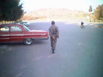 ![]() 遺跡を警備する自動小銃を持った兵士 |