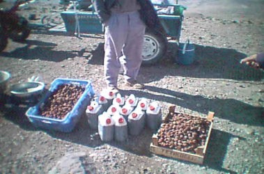 高台から見下ろすカッパドキアトルコではまだインターネットは個人の家庭までは普及していないという説明であった。 従って先生もインターネットをするときは、大学まで出かけていってするという説明であった。 カイセリの町の郊外に出ると、あまり緑のない荒涼としたは土色の大地が続いていた。 この荒涼とした大地を時速100キロ近い高速度でしばらく走っていると、やがてカッパドキアを見渡せるところにやってきた。 非常に景色がいいところで、高台から見下ろすカッパドキアはそこからは180度の視野で見渡すことができた。 天気も快晴であり、はるかかなたまで、この世界遺産となっているカッパドキアの大地を見下ろすことができた。 しばらくこの景観を楽しんでいると、やはり人がたくさん集まるところらしく、横で土産物を売っている地元のお百姓さんがいた。 この地元のお百姓さんが自ら作った農産物をここで売っていた。 どうもこのカッパドキアはブドウの産地でもある。このためカッパドキアのワインはトルコでは有名なワインであった。 ビデオを見るためにはブラウザーを Internet Explorer にして Microsoft Windows Media Player で見る必要があります。 (こちらで入手可能) |