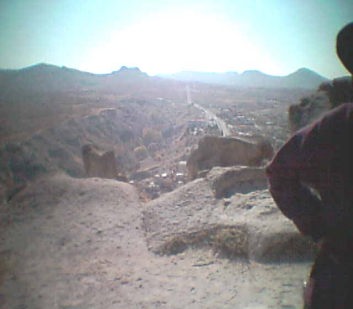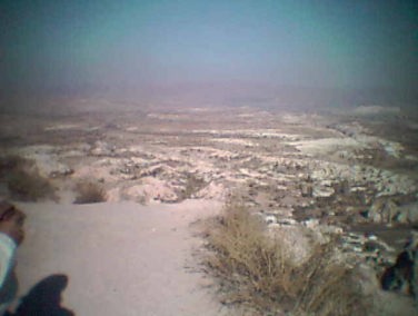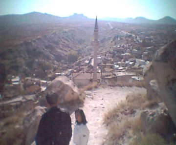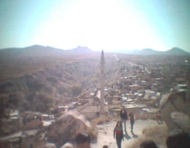 ![]() 下りに見えてきた村のモスクの尖塔からはお昼の祈りのコーランが響いていた |