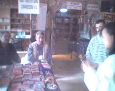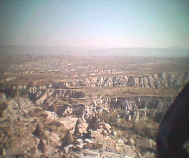 中央の砦オルタヒサルの頂上からすばらしい360度の展望最初はこの中央の砦オルタヒサル岩山の頂上まで登るなどとても考えてなかったために、一気に頂上まで登っていく事になったので足元がガタガタすると同時に息切れがしていた。 頂上には他の観光客が既に登っていた。素晴らしい展望が広がったので頂上でしばらく休みをとりながら360度の展望を楽しんだ。 ビデオを見るためにはブラウザーを Internet Explorer にしてMicrosoft Windows Media Player で見る必要があります。(こちらで入手可能) さすがに、西田さんも息切れがしていたようであった。 帰りは登っててきた道をまた同じ方向にたどって下って行った。私は入り口近くにあった洞くつの中の土産物店で、解説書などの土産物を買い求めた。 ここは、観光コースとなっているらしく、入り口の近くにはたくさんの土産物店が並んでいた。その中の1軒に骨董品の土産物店があったが大野さんが土産物を買い求めるにこの店の中に入って物色を始めた。 この様にこのカッパドキアの各史跡には常に土産物店がそれも地元の人が販売している土産物店が店を連ねていた。 |