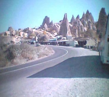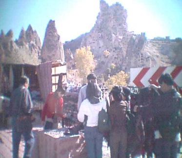 露店の土産物店に群がって値切る交渉を始めていた。裏側から見ると円錐のこの中央の砦のそこかしこにたくさんの窓がつくられているのがよくわかった。ここから見るカッパドキアの景観も景勝地のひとつになっているようで、われわれがやってきたときには団体客の外人の観光ツアーバスがそこに停まって観光客を下ろしていた。みると砂漠のラクダということで、ラクダが2頭、観光客を乗せて歩くサービスをそこでやっていた。 このカッパドキアはまたいたるところにブドウが植えられていた。有名なワインの産地でもある。 飛行機の中やレストランで飲むトルコワインのカッパドキアのワインは私の口にはいま1少し口にあわなかった。少し渋みがあってドイツのワインのクラスでいえば、リースリングといったクラスのランクに入るのであろうかと思われた。このためトルコワインは日本にお土産に購入して帰ることはしなかった。私が美味しいと思わなかったからである。当然美味しいと思えば重たいのを無理してお土産として購入して帰ったことであろうと思われるが。ただ値段は日本に比較して格段に安く、その意味では非常に値打ちがあるワインといえると思った。 |