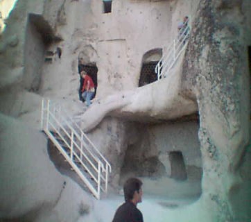 岩壁には、1階から2、3階にのぼる階段が掘られており、 |