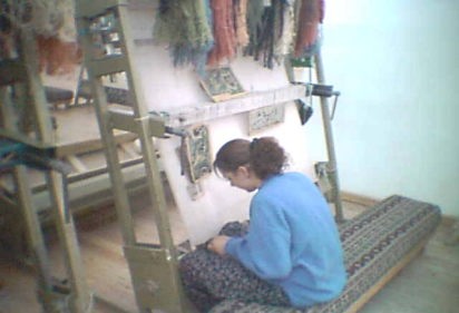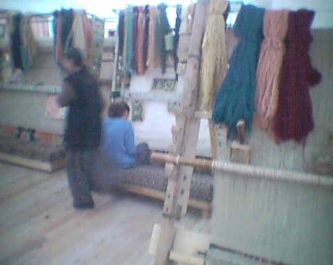 建物の中に入ると、織り子さんが、若い娘さんばかりであったが、せっせとトルコ絨毯の糸を紡いでいた。 |