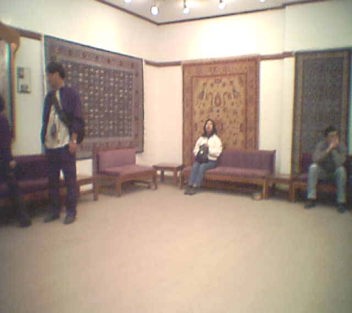 大きなトルコ絨毯を広場に広げて展示するために、何人もの男性がひと通り説明が終わると、今度は専門のバイヤーがその部屋に入ってきて、われわれ一人ひとりに商談をはじめ始めた。 トルコ茶を進めながら、ゆっくりと粘り強くトルコの人は我々との商談を進め、なかなか商売上手であった。 ひと通りトルコ絨毯の説明を聞いてわかったことであるが、トルコで最高の絨毯はヘレケの絨毯であることがよくわかった。どうせ購入するならそのヘレケのじゅうたんを購入して帰りたいと思ったが、本日案内された工場が、このヘレケのじゅうたんを作る工場ではなかったので購入するのは最初からあきらめていた。 ふと見ると1番トルコ絨毯を見たいと言っていた、大野よし子さんの姿が見えない、どうやら、この工場の商談攻勢を嫌って、展示を見て回っているらしい。 私の方にもトルコ絨毯を買うようにバイヤーの人が進めにきたが、ヘレケのトルコ絨毯なら、ともかく、この工場で買う絨毯としては、100,000円もかけて買う気持ちはさらさらなかった。 |