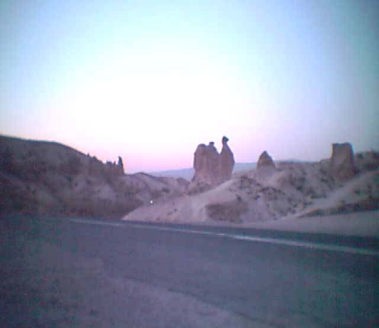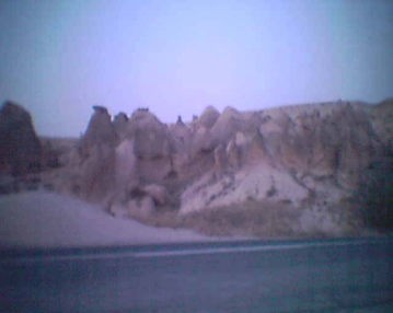 観光をここら辺で切り上げて、そろそろカイセリの町に帰ろういずれにしろ、出かけていた運転手がガイドさんに誤って一応のケリがついた。 大野美穂ちゃんも盛んに、あまり怒ったら私が許さないからといっていたのが印象的であった。 なかなか、目鼻立ちのスッキリした、背がすらりと高いトルコ人の運転手であった。 その後、西田さんも念願の焼き物のショッピングを終えることができたので、もうこれで満足だから、そろそろ帰ろうかといって、まだ観光場所が全部見終わってないのに、心はすでに空港に飛んでいっていたようであ。 時間もすでに夕刻になっていたし、周りも次第に暗くなってきたので、観光をここら辺で切り上げて、そろそろカイセリの町に帰ろうかと考えた。 ガイドは我々をまだカッパドキアの観光名所である地点に連れて行こうとして車をその方に運転して行っていたが、私は、もう時間もだいぶ遅くなったので、観光はこのぐらいで、切り替えてカイセリの町に引き返してくれとガイドに頼んだ。 |