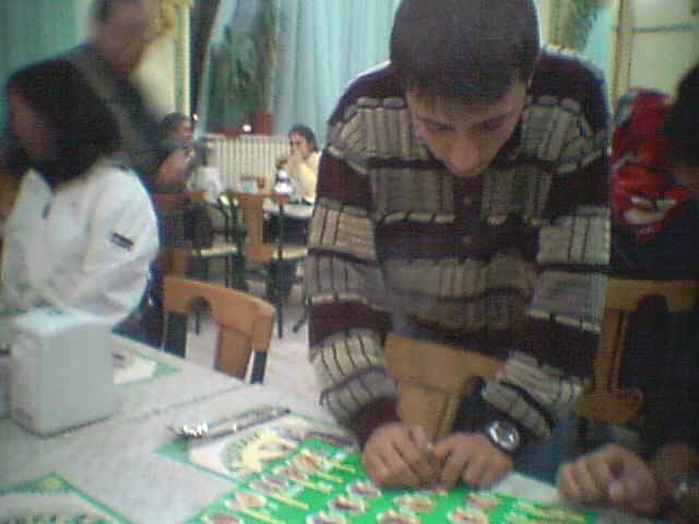 トルコの人たちで熱気、珍しいせいかジロジロと盛んに我々のことを眺めてやがて車に近づいていって、店の名前を告げていた。 我々を連れていってくれたところは道路に面した、かなりたくさんの人が入っているトルコ料理の専門店であった。 赤々と電灯がついており、大々的に展開しているという構えであった。 中に入ると、トルコの人たちで熱気がこちらにも伝わってきた。 われわれが珍しいせいかジロジロと盛んに我々のことを眺めていた。 確かにかなり大きな店であったが、いっぱいの人で混雑をしていた。 人気のトルコ料理専門店であろうか。 席に案内されて、トルコ料理のメニューをもって来られたが、われわれにはトルコ料理も読めないし、さっぱりわからないので、ガイドさんに料理を頼んでくれと依頼した。 どうやらガイドさんがメニューを見ながら適当なカバブーをいろいろを頼んでおいたみたいである。 にぎやかな店で、店の中は家族連れとか、恋人連れの人たちがたくさん食事に入っていた。 カバブーというトルコ料理は、日本で平易に言えば焼き鳥みたいなものである |