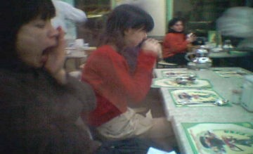 ![]() ヤット、食事に・・・・・ホットしているところ! |