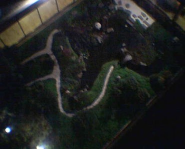 ベランダの下にはヒルトンホテルの庭園が広がっていた。 |