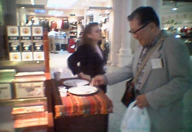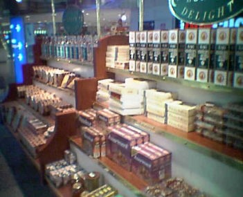 国際空港のショッピング街としては非常に優れたショッピング街このショッピング街は非常に明るい雰囲気の洗練された通りとなっており、店の種類も数も大変多かった。 国際空港のショッピング街としては非常に優れたショッピング街であろうと思われた。 いろいろ興味ある品物は、そこここで展示販売されており、その意味で楽しいショッピング街ということができた。 私の口にはあわなかったがトルコのお菓子類もかなり豊富に売られていた。 砂糖やハチミツをたっぷり使ったお菓子が多いのでとても甘いのが特色である。 プリンやチョコレートなどかなり甘い、非常に砂糖やスパイスをよくきかせてていて、とにかく一言でトルコの菓子は甘いのが特色である。 お菓子屋の前では試食用の品物が展示されていて、売り子さんの女性がこれを味わって食べていけという。 西田さんがそのサンプル品を手につまんで試食を試みていた。 とにかく甘いのである。 |