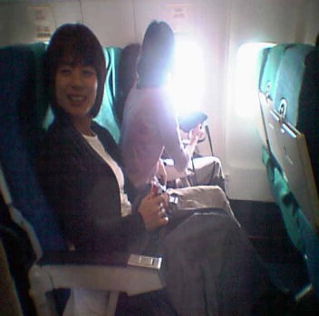 ![]() 飛行機が出発することになって、ひと安心喜ぶ美穂チャン・・・・・ |