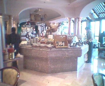 ![]() レストランの中はたくさんの外人客が朝食をとっていた。 |