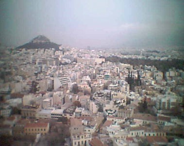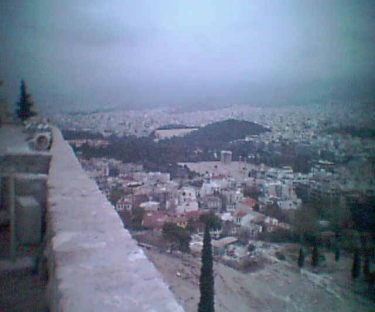 ハドリアヌスの門そしてオリンピアゼウス神殿展望建物の頂上の破風の部分が、そっくり彫刻部分がイギリス人に持ち去られてしまっていて、大変残念であった。やはりこのような彫刻物の見事なものは実際の現地の国の実際の建物で見て初めて価値があるので、いくら見事なものであるからといって、そこから縁もゆかりもないイギリスの大英博物館に展示しても、やはりイギリスで見る限りにおいては興ざめである。このようなものは現地で見て初めて意義があり、意味があるのである。ペリクレスによって完成されたこのパルテノン神殿はドーリア様式の最高傑作といわれるもので、これを作ったのは当時の大彫刻家フィディアス有名である。このパルテノン神殿の内部にはアテナの女神が設置されていたといわれている。アテナの女神は従ってアテネの守護神である。このアクロポリスの丘はアテネ市街を一望できるまことに素晴らしい景色の展望台である。我々が訪れたときは、空は快晴で雲ひとつなく素晴らしく眺めのいい、展望にはもってこいの日和であった。多くの観光客がアクロポリスの丘の台地の縁まで出てきて、このすばらしい絶景の景色を楽しんでいた。アテネのちょうど中心市街地に立っているので、非常にアテネの市街が一望できる好都合な位置にあった。 |